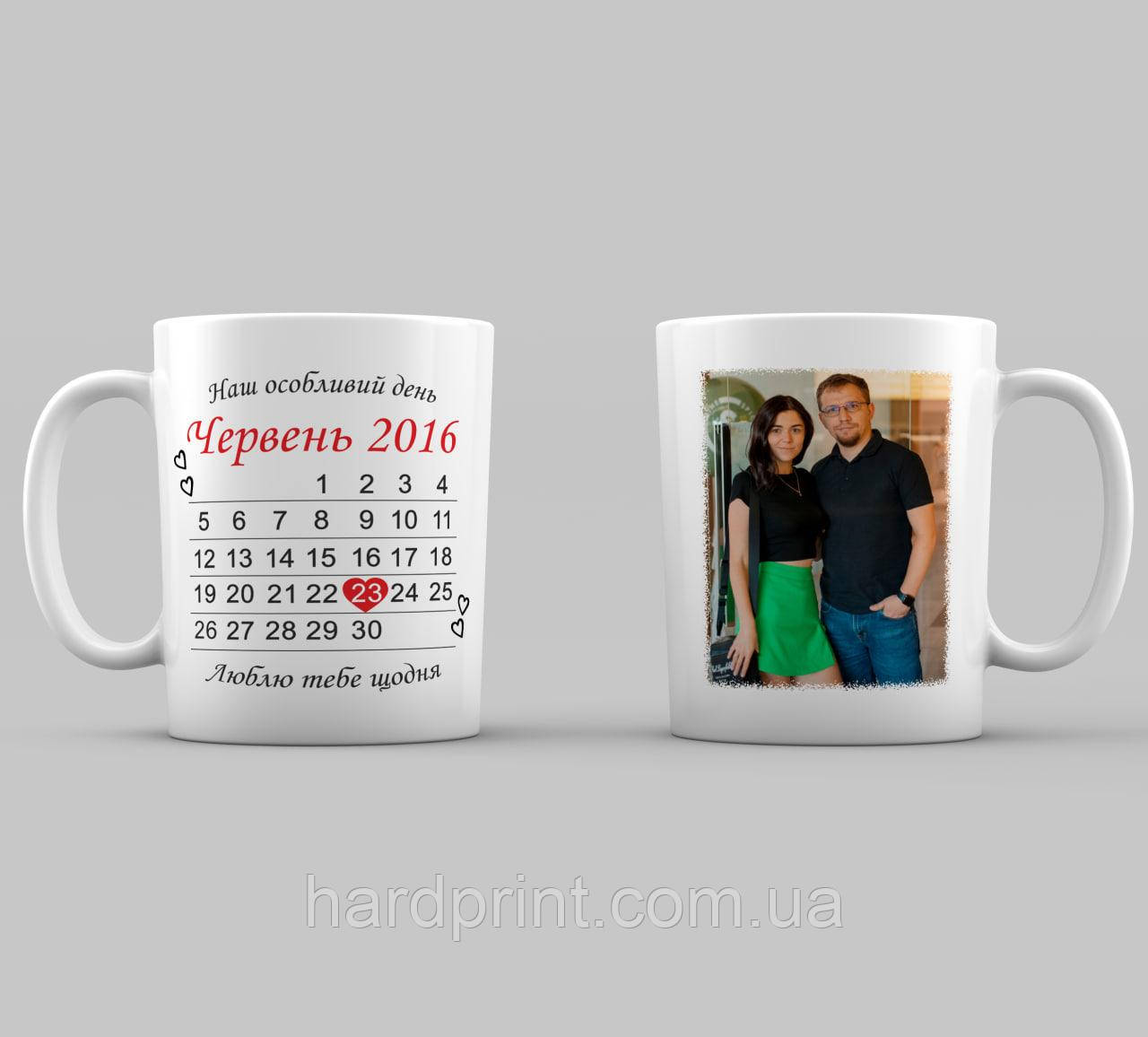 Чашка для пари. Чашка для закоханих. Чашка з фото та календар на пам'ятну дату.